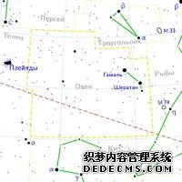 每年12月中旬晚上八九点钟的时候,白羊座正在我们头顶。这是个很暗的小星座,里面只有紧挨着的2.3m的α星和2.7m的β星稍微显著些。